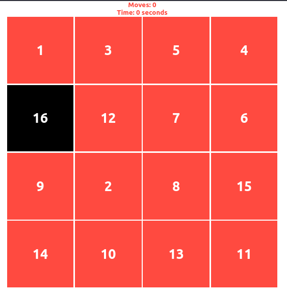 In this game there is a 44 board with 15 numbers and an empty square. Switches items in and. If move is same as 0 1 2 3 4 5 6 7 8 then.